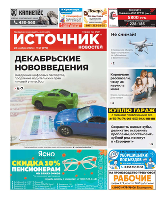 Еженедельная газета «Источник новостей» – одно из самых популярных изданий в Кировской области. Основные темы: информация о событиях в регионе, политика, культура, социальные проблемы и многое другое. В 2022 году газета признана «СМИ года» в Кировской области. Еженедельник рассчитан на широкий круг читателей.