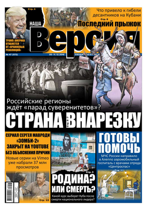 Общероссийская еженедельная газета «Наша Версия» сегодня - это один из ведущих еженедельников журналистских расследований – жесткий и информативный, остроумный и понятный.
